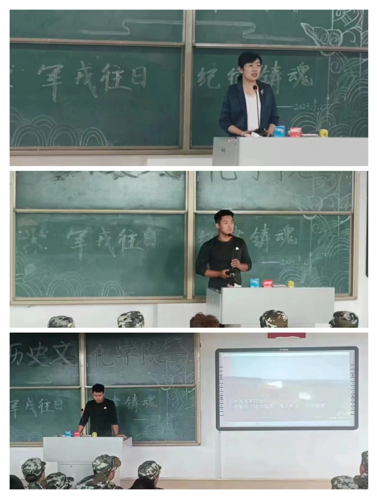 9月7日,明升体育于行知楼323开展了“军戎往日·纪律铸魂”的主题活动。2021级历史学一班张孟同学在会上分享了他迷彩戎装的青春感悟,激励同学们通过各种途径勇敢追逐青春梦想,把爱国之心化为爱国之行,为祖国奉献热血青春。此外,张孟同学还分享了校园生活,为同学们积极答疑解惑。