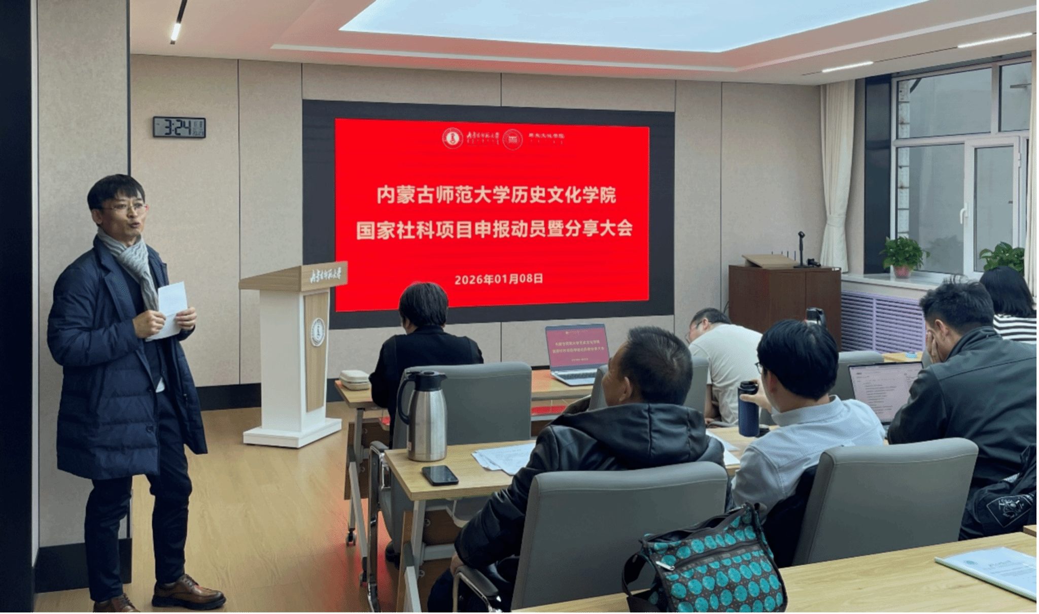 为扎实推进2026年度国家社科基金项目申报工作,激发员工科研积极性、提升申报质量,1月8日,明升体育在赛罕校区学术交流中心2号会议室举办2026年国家社科基金项目申报动员大会暨分享会。公司党委书记李艳洁,党委副书记、副院长檀晶,副院长白林,以及40余名员工参会。会议由副院长白林主持。